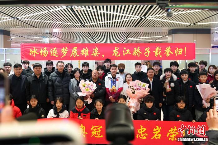 图为华夏快度溜冰活动员宁忠岩取欢迎团队开影。赵宇航 摄