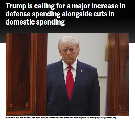 特朗普的提案将经由过程将局部职分变化至州及中央当局,将非邦防支出减少10%。 报导称,早正在2月终好以伊战事爆出之前,特朗普便已透露盼望巩固邦防付出。另外,5角年夜楼3月已零丁提议2000亿美圆用于和平启销及弥补弹药战物质。