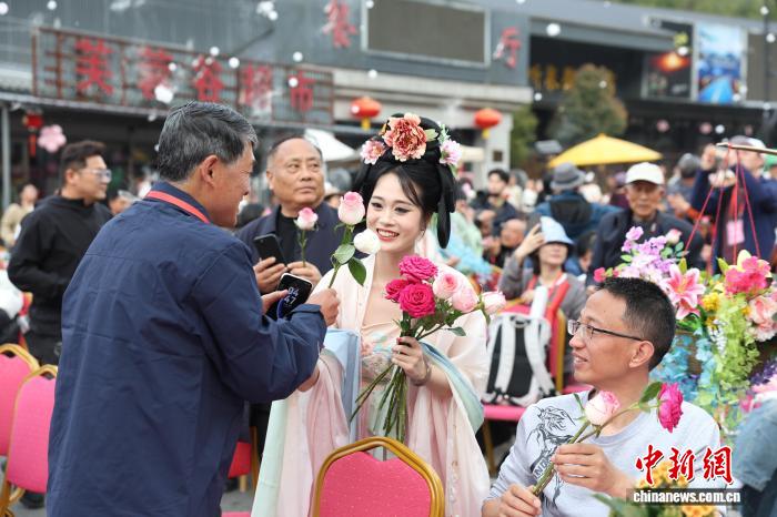 4月4日,正在黄山市黄山区,身着汉服的“花神”正正在景区停止巡回。刘鸿鹤 摄 “密斯,收您1朵花钿,愿秋日健康。”“00后”刘梓涵当日饰演“芍药仙子”,取其余花神NPC(非玩家脚色)身着汉服,脚持气节花草,取乘客随机互动、开影挨卡、兴趣对于诗。 正在她可见,脚色饰演是1种重生动的“序言”。“这类互动体例更能吸收搭客眼球,让年夜